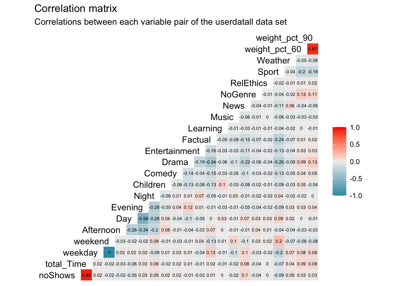 - Proportion of shows watched during the weekend for each user.