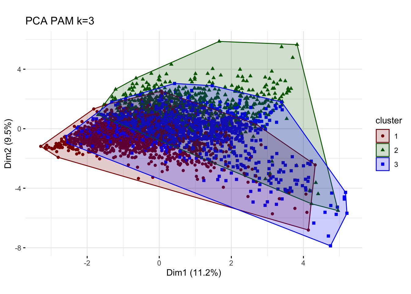 We do note the poor PCA visualizations and performance under PAM method and that we should perhaps explore this methods with a different cluster size.