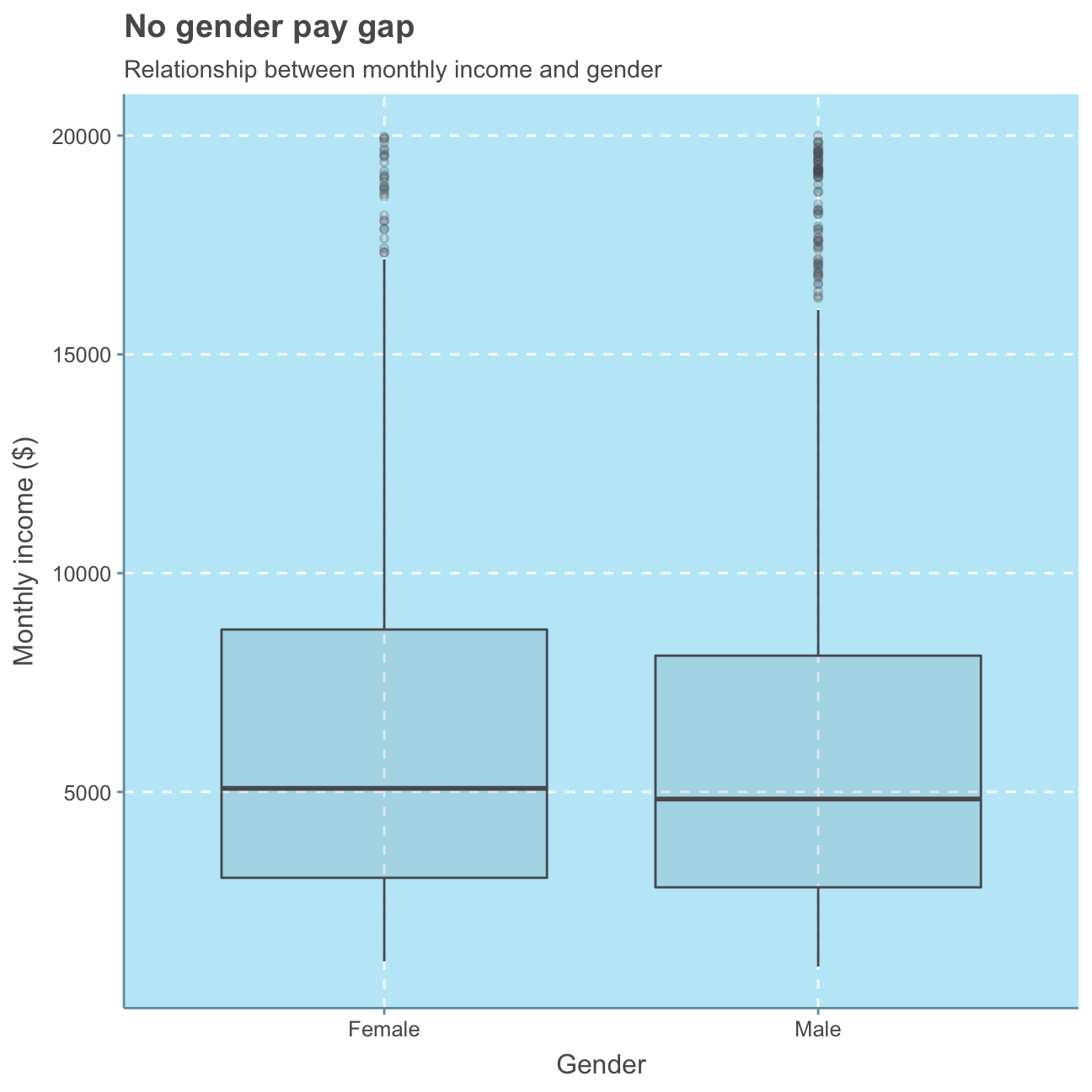 Again, we find no significant relationship between an employee’s gender and their monthly income.