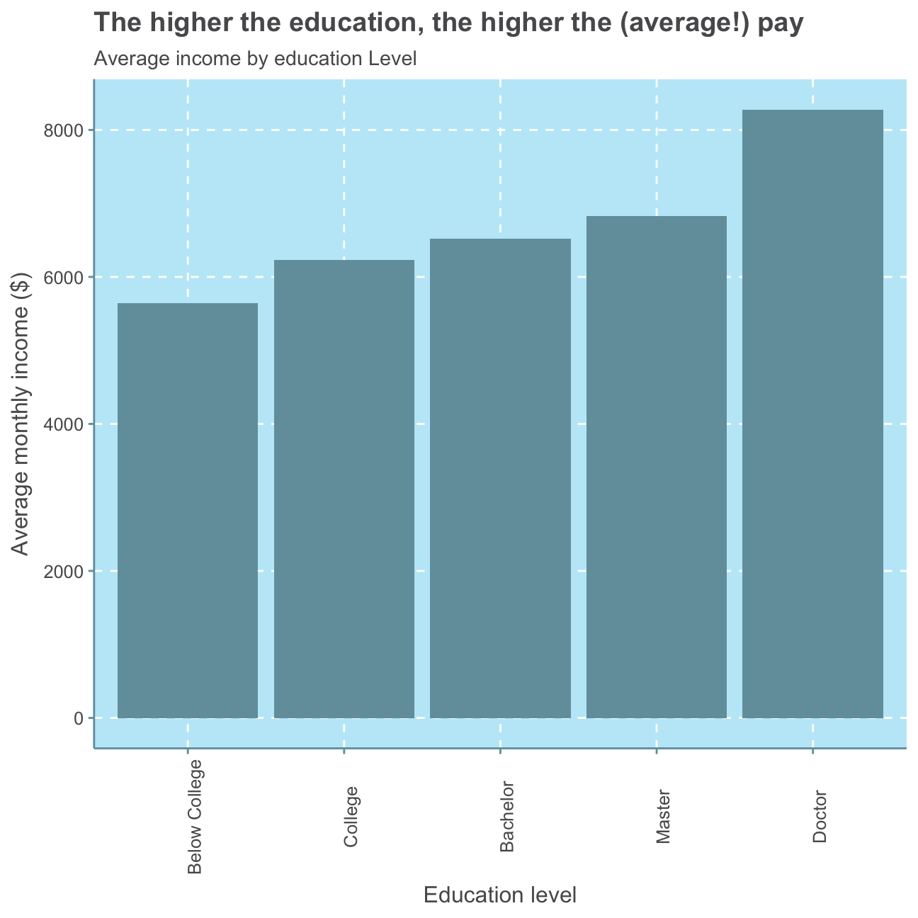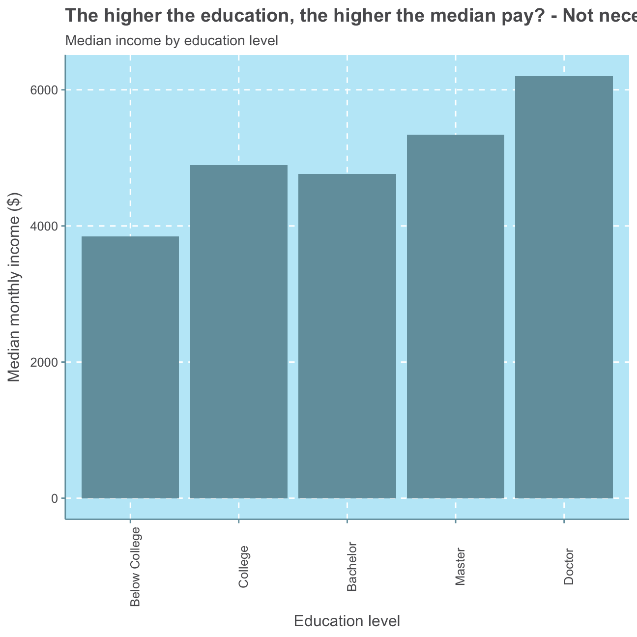 labs(title = "The higher the education, the higher the median pay? - Not necessarily!",
