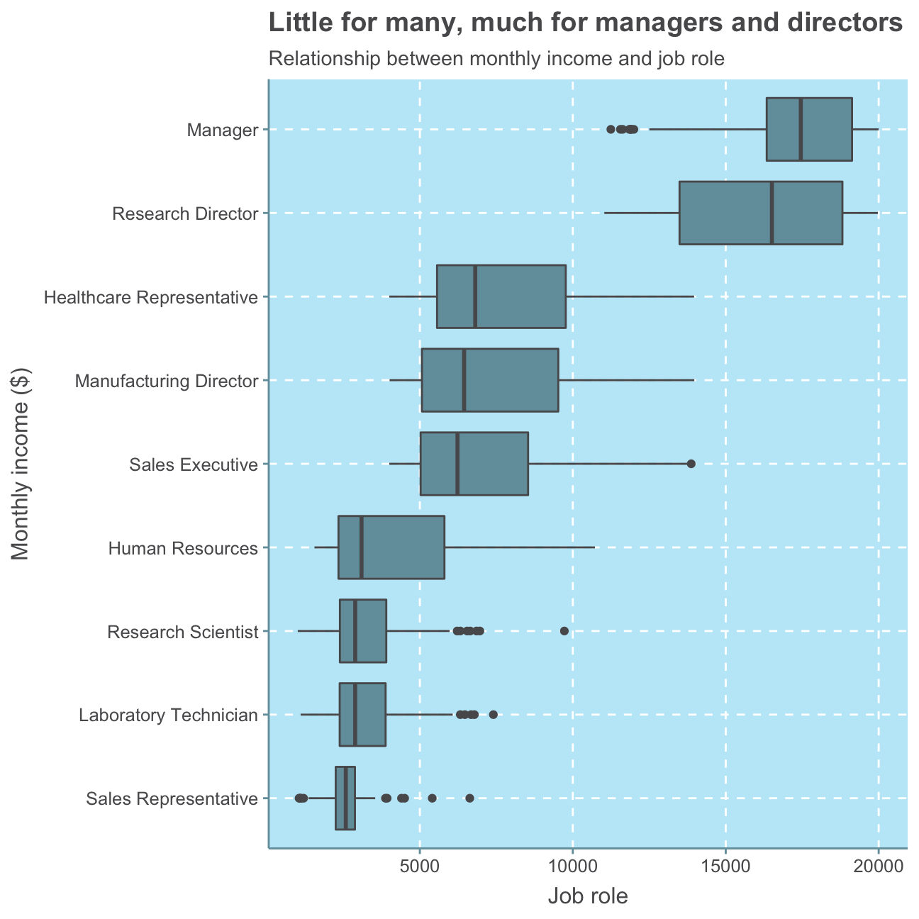 hr_cleaned$job_role <- factor(hr_cleaned$job_role, levels = c("Sales Representative", "Laboratory Technician", "Research Scientist","Human Resources", "Sales Executive", "Manufacturing Director", "Healthcare Representative", "Research Director", "Manager"))