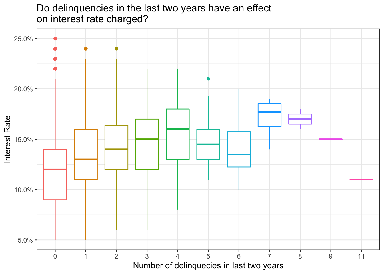 delinq_2yrs = factor(delinq_2yrs) # turn 'delinq_2yrs' into a categorical variable