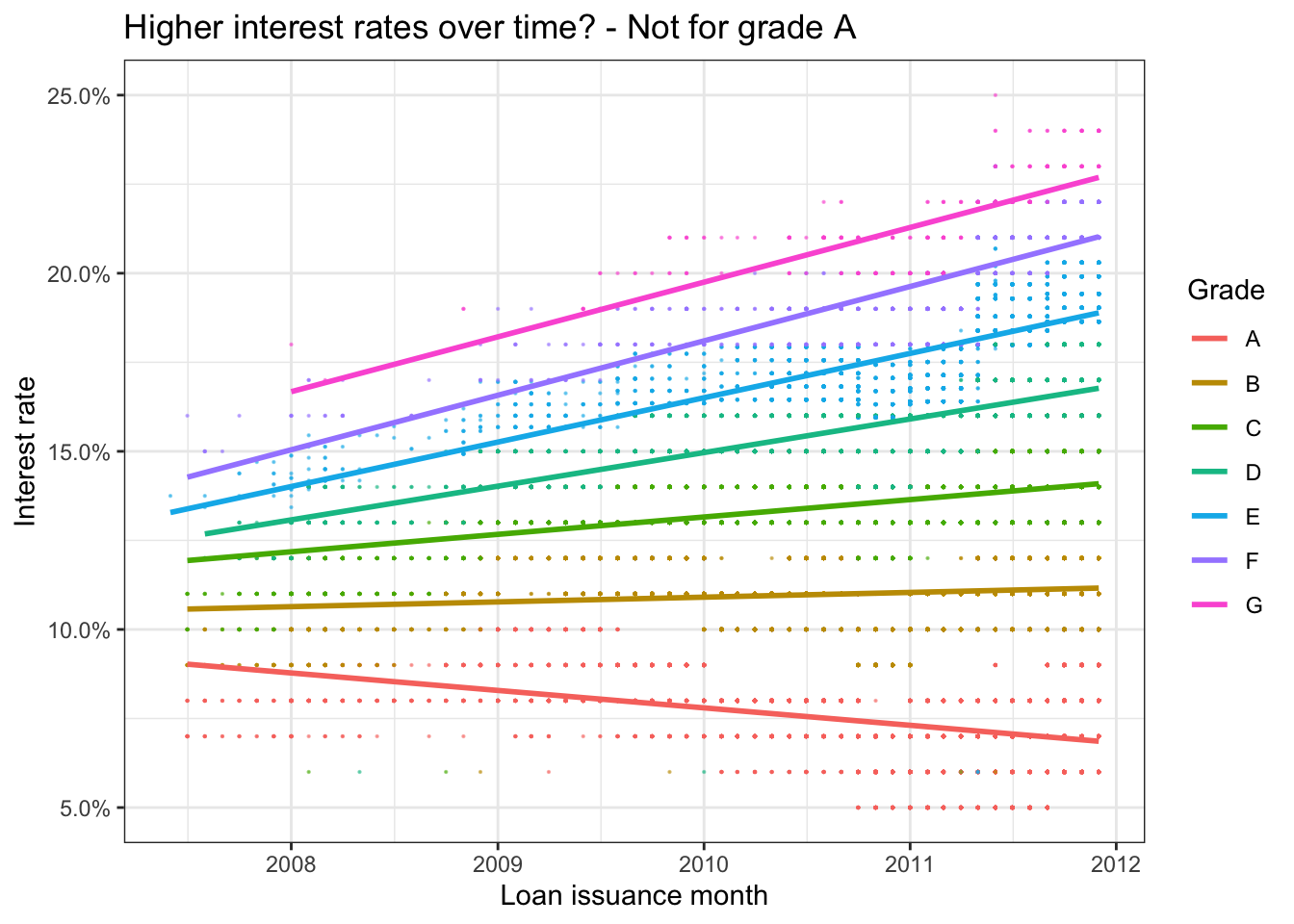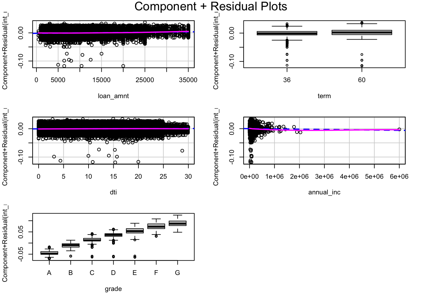 int_rate ~ loan_amnt + term + dti + grade + Price + Price*grade + inflation, #final model with inflation data